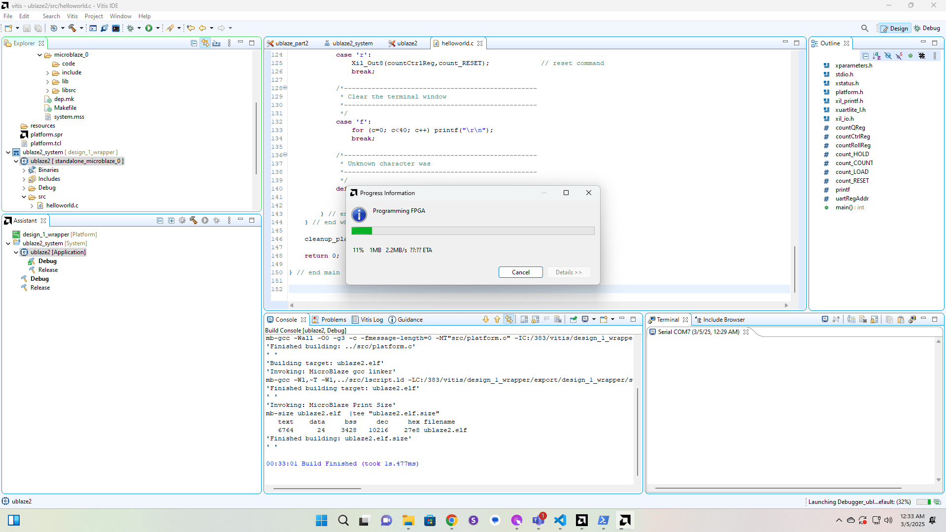 Now go to design_1_wrapper/microblaze_0/standalone_microblaze_0/bsp/Makefile and comment out the line that says "BSP_SEQUENTIAL_MAKEFILES := microblaze_0/libsrc/My_Counter_IP_v1_0/src/Makefile"