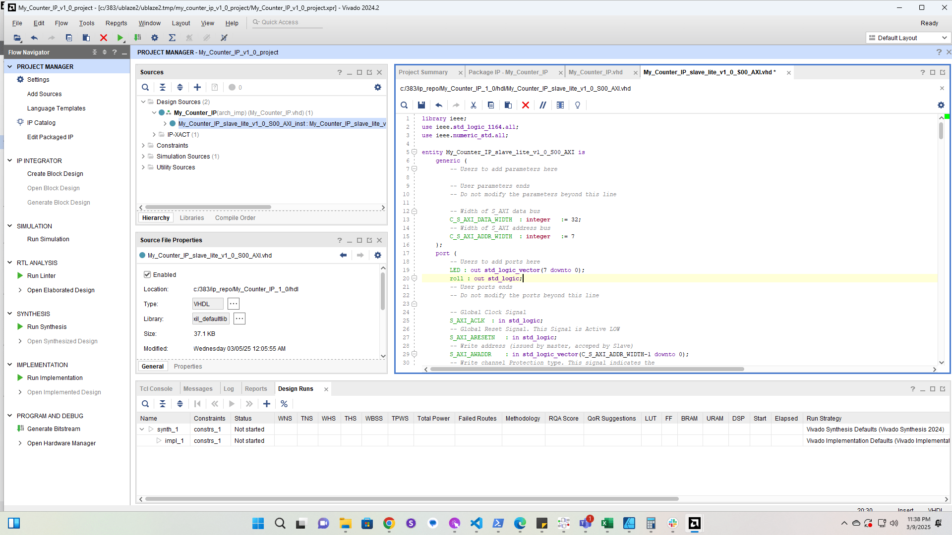 Add the roll port to the lec10 counter declaration